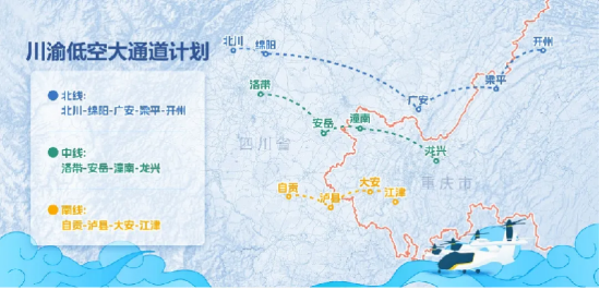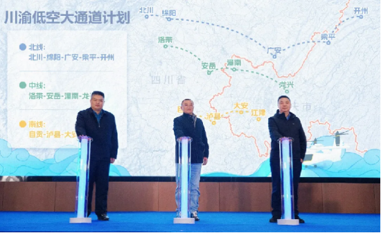 川渝两地还联合发布《北线、中线、南线三条川渝低空大通道计划》,绘制了未来川渝低空互联互通、成网成系的宏伟蓝图。