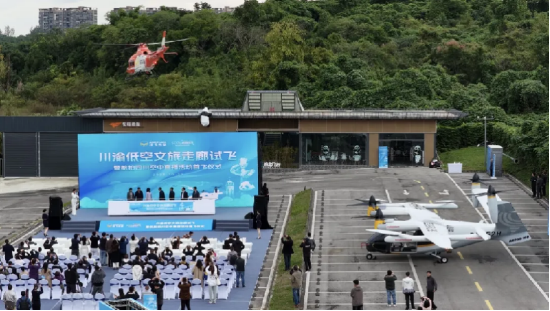 今年十月,“巴蜀低空文旅走廊”首站试飞圆满成功,一条低空文旅通道在巴蜀大地上正式启航。