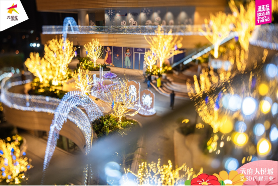 开业档,天府大悦城呈现出一系列爆款活动,带来天府新区多个“第一次”:与迪士尼中国及香港迪士尼乐园度假区联动的首届城市灯光节暨迪士尼冰雪奇缘10周年灯光限定展、天新首届跨年盛典、首个Brunch+Bistro市集、首次超豪华阵容无人机烟花秀、氛围感降雪——为岁末狂欢再添情绪价值,是一次成功的青年文化的输出,也为成都商业市场添上了浓墨重彩的一笔。