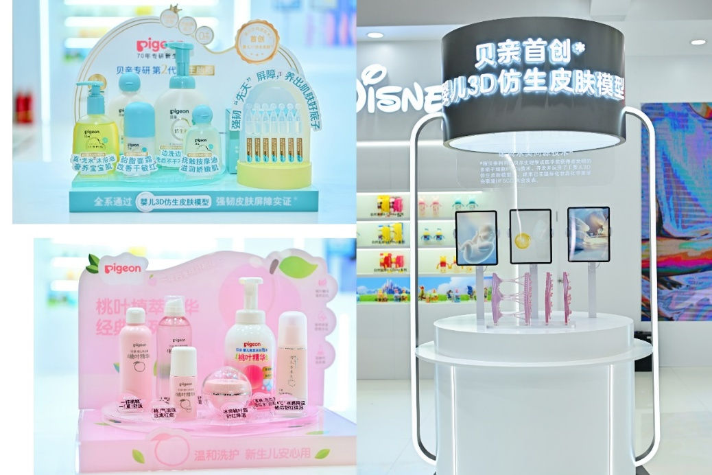 除此之外,贝亲新一代仿生胎脂婴儿护肤系列、桃叶精华婴儿护肤系列、熊猫水杯等明星产品,以及贝亲首创的婴儿3D仿生皮肤模型也悉数亮相,共同构成一站式的科学育儿体验空间。
