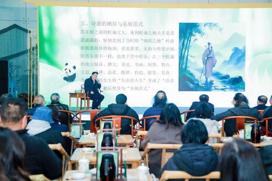 在巴蜀文脉中,以三苏为代表的人文精神是璀璨的文化代表之一。四川省政府文史研究馆特约研究员,中国苏轼研究学会会长、西华大学文学与新闻传播学院院长潘殊闲,以“世界千年英雄苏东坡”为主题,讲述了他眼中的苏轼形象。“苏东坡的诗、文、词、书法、绘画、经学等成就都属于‘第一流的’或‘超一流的’,是当之无愧的‘文化全能冠军’。他的一生做了非常多的爱民利民、惠民助民的善事,将‘小我’变成‘大我’,拓展了生命的高度、宽度、厚度与温度,成为流芳千载的‘人生达人’。”
