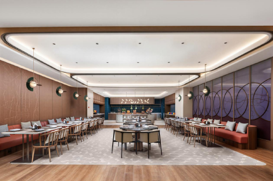 位于酒店一层的大堂吧,则将全日餐厅与特色清酒吧融合为一体,成为酒店及本地的一个社交新聚点。白天,这里提供营养早餐、西式零点套餐、海鲜自助餐。入夜后,灯光转暗,氛围松弛,则转变为可小酌畅谈的雅致清吧。