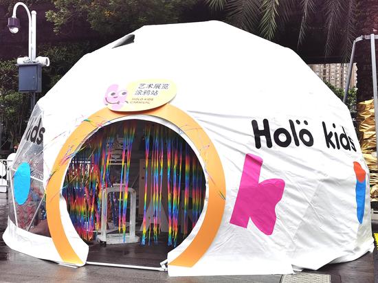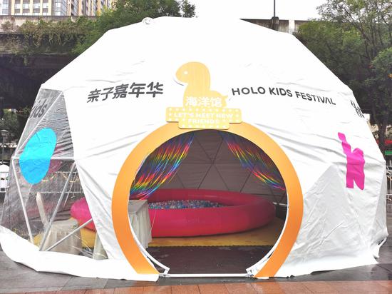 现场设有以亲子为主题的市集,也是当前首个亲子主题市集。市集现场的业态主要以儿童亲子体验内容为主,与传统商品售卖为主的市集有所不同,趣味性十足。