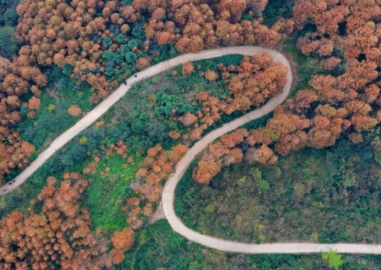 金凤山于秋冬之际,悄然披上了华彩的霓裳,藏着一片鲜为人知的彩林秘境。