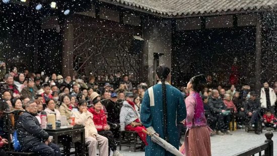 川剧文化艺术中心带来经典川剧表演,生旦净末丑轮番登场,尽显川剧魅力;还有音乐话剧《戏梦长生》沉浸式演艺,沉浸式体验戏剧与古城的碰撞。