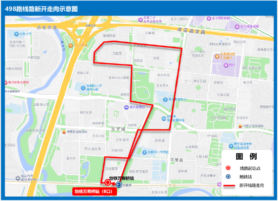 站点设置:地铁万寿桥站(B口)、东坡北二路、瑞星路中、四威南路、贝森路青森街口、东顺路西、东顺路、东顺路东、双新北路、双新南路、玉宇路东、瑞星路中、瑞星路、地铁万寿桥站(B口)。