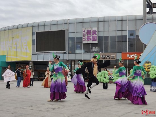 与常规推介不同,此次活动将吐鲁番的深厚文化“搬”到了成都街头。身着高昌回鹘王、回鹘王后华丽服饰的演员雍容华贵,与装扮成《西游记》中经典角色的“唐僧师徒”相映成趣。当火焰山的“热情”与大熊猫的“萌态”在春日的阳光下同框,引得现场游客纷纷举起手机拍照留念。