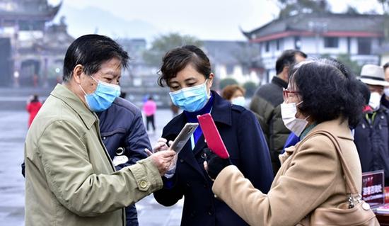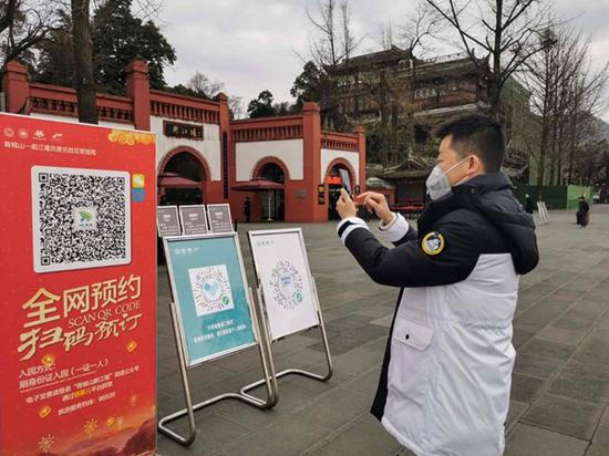 成都市青城山都江堰旅游股份有限公司副总经理张健介绍到“为给游客营造安全放心的旅游环境,我们在复工前对员工进行了安全卫生防护技能培训,观光车、索道业务部售票窗口在疫情期间一律采用扫码购票在线支付等无接触式服务,同时,对游客进行体温测试、消毒等多项举措。”