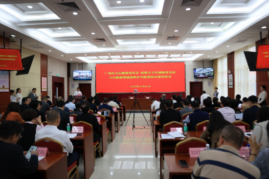 成都市委常委、市政府党组成员杜海波,广州市政府党组成员、副市长赖志鸿出席见证,成都市卫健委主任杨晓涛与广州市卫健委主任陈斌,分别代表成都市卫健委和广州市卫健委,签署卫生健康领域战略合作框架协议。两地经信、医保等部门、区(市)县卫健局、医疗机构有关负责人以及生物医药企业代表超200人参加活动。