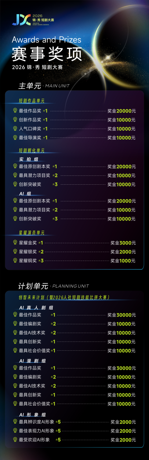 从平凡梦想到耀眼赛场,只差一次勇敢报名——2026 锦・秀短剧大赛重磅官宣!全球创作者速来,共赴光影新程