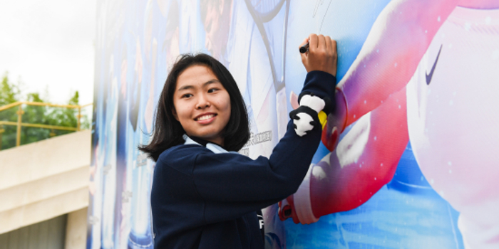 在抽签仪式进行之前,参赛选手们近距离接触了心心念念的大熊猫。刚到熊猫基地大门口,选手们就迫不及待地拿出了“装备”——熊猫发箍、手带以及各种熊猫饰品给自己先打扮起来,还一起来了个大合照。憨态可掬的熊猫让选手们直呼“熊猫太有趣了太可爱了。”一路上,参赛选手们不时被熊猫逗得哈哈大笑。到了纪念品商店,品类繁多的熊猫纪念品让选手们爱不释手。