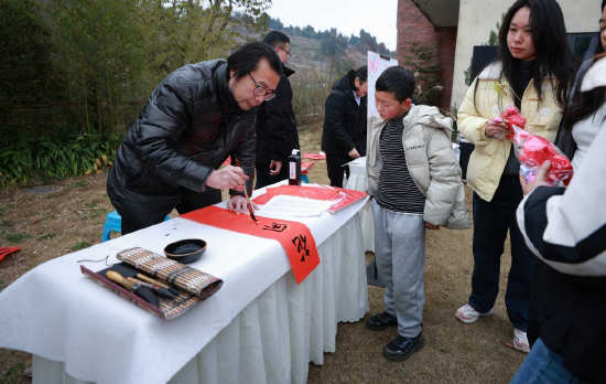 在主会场,年俗文化体验同样精彩纷呈。非遗工坊内,糖画艺人巧手翻飞,金黄糖浆转瞬化作栩栩如生的生肖图案;棕编师傅指尖穿梭,青翠棕叶变身灵动小动物,引得大人孩子争相体验。春联书写区墨香四溢,现场既有书法老师现场挥毫,为居民送上寓意吉祥的春联;也提供笔墨纸砚供群众自由创作,不少居民兴致勃勃提笔书写,在一笔一画间感受传统年俗的魅力。活动现场还发放了马年主题特色小礼品,为节日增添喜庆氛围。