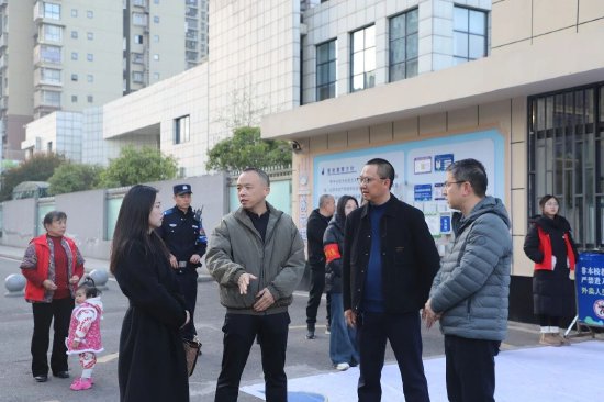 在问陶小学,谢成炀一行实地察看校园周边治安环境、交通秩序,详细询问隐患排查、护学岗值守、矛盾纠纷化解等工作落实情况;仔细检查校园门禁管理、视频监控、防冲撞设施、一键报警系统等安防设备运行状况,深入了解食品安全管控、应急演练开展、学生心理健康教育等相关工作,并对一线护学民警、校园安保人员的辛勤付出表示肯定。