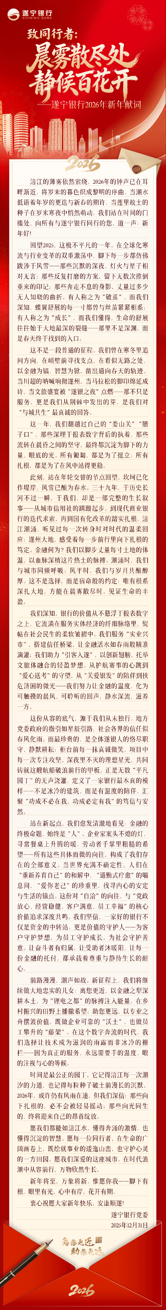 致同行者:晨雾散尽处 静候百花开|遂宁银行2026年新年献词