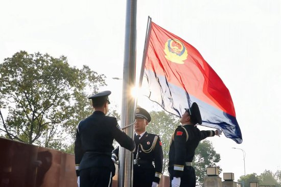 1月9日上午,经开公安隆重举行2026年中国人民警察节升警旗暨荣誉授予仪式。在庄严的警歌声中,中国人民警察警旗冉冉升起,全体民警身着警礼服,面向警旗肃立敬礼,目光坚毅。