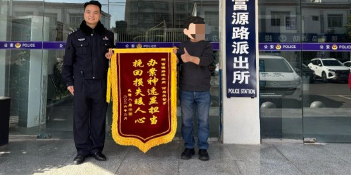 接警后,民警何柏兵迅速展开调查,通过联系钟某家属进行耐心沟通和法律教育,最终在2月14日帮助唐先生追回全部损失。拿着失而复得的钱款,唐先生特意定制锦旗表达谢意。