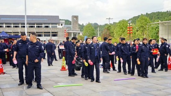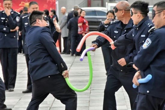 猜灯谜区始终人气爆棚,红彤彤的灯谜条随风轻摆,谜题涵盖传统文化、生活常识、公安业务知识等内容,融知识性与娱乐性于一体。民辅警们或独自凝神思索,或三五成群交流探讨,为解开一道谜题各抒己见,一旦猜出谜底,便兴冲冲地前往兑奖处,喜悦之情溢于言表。射击气球区前,大家凝神瞄准、果断出手,气球爆裂的声响与欢呼声此起彼伏;投壶前,众人屏气凝神、稳步投掷,感受传统民俗的独特魅力;套圈区里,大家瞄准目标、轻轻一掷,期待着幸运之圈的降临;蒙眼敲“福”处,蒙眼旋转后的趣味摸索,让现场笑声不断;筷子夹乒乓项目中,大家小心翼翼操控筷子,考验着耐心与手眼协调能力,小小的乒乓球承载着满满的欢乐。