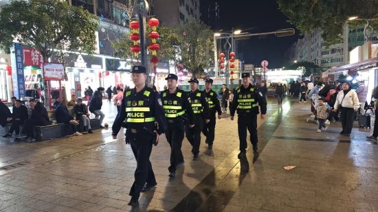为织密织牢社会面安全防控网,全局启动最高等级勤务,全面构建 “守点、巡线、强面” 立体巡防体系。除夕至初一,全局出动警力160人次在蓬莱公园值守;节日期间,县局在城区设置执勤驻点 8 个,累计投入警力 150余 人次;特警、城区两所参与巡逻防控警力达 400 余人次,采取 “车巡 + 步巡 + 视频巡” 联动模式,重点围绕商圈集市、公园景区、交通枢纽等人员密集区域开展 24 小时不间断巡逻。闪烁的警灯、忙碌的警服身影成为街头最安心的 “风景线”,切实提升路面见警率、管事率,让群众在热闹祥和的氛围中倍感安心。