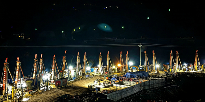何烨身后,150台冲击钻沿围堰一字排开,正在向大地深处掘进。这里正在进行的是水电站建设的关键工程之一——防渗墙施工。这道深入地下数十米的混凝土墙体,是大渡河“驯服”的关键,它将在汛期来临前,为基坑开挖和后续主体施工筑起一道坚不可摧的“水下长城”。