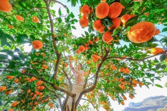 3月26日,天地间早已褪去了冬日的沉寂,万物复苏,草木萌动。四川石棉县的田野间,上演着一出花果同树的奇妙戏码。这是一场跨越季节的邂逅,是生命轮回在枝头的极致绽放。走进这片土地,仿佛踏入了一个流光溢彩的梦境,黄果柑、沃柑、春见、明日见、血橙……各色晚熟柑桔竞相展示着它们独特的魅力,在花香与果香的交织中,谱写一曲春日丰收的华章。