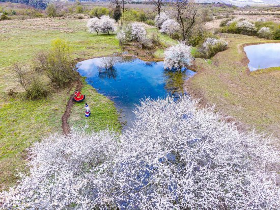 三国七擒孟获地,芳草萋萋掩古城。漫步花海,脚下是绿草茵茵,身旁是繁花如雪,远处是群山巍峨,耳畔是清风低语……或许,千年前的英雄也曾在这样的春日里,凝望过满树繁花,让征战的疲惫在花香中消散。孟获城万亩草甸分明是一张巨大的宣纸,而野李子花,便是大自然挥毫泼墨留下的写意。每一朵都标记着春天的诗句,每一缕春风都加深着花的气息。偶尔一只野蜂闻香而来,停在李花上,微小的翅膀翻飞,在纯白的花海中显得格外醒目。