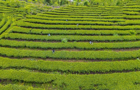 四川石棉县千亩高山生态茶园迎来春茶采摘季