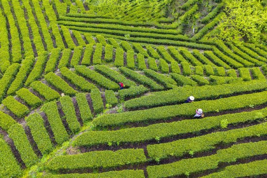 晨光初照,薄雾如纱,缠绕于茶垄之间,似梦似幻。远望,层层叠叠的茶行如碧波荡漾,自山脚盘旋而上,宛如大地写就的绿色诗行,平仄有序,韵律天成。露珠在芽尖轻颤,晶莹剔透,似天穹遗落的泪,又似春之眼眸,映照出山川的静谧与生机。微风拂过,茶香氤氲,那是一种清冽中带着甘甜的气息,混合着泥土的芬芳与山泉的潺潺之音,沁入肺腑,令人恍若步入世外仙境,心随景动,神为茶醉。